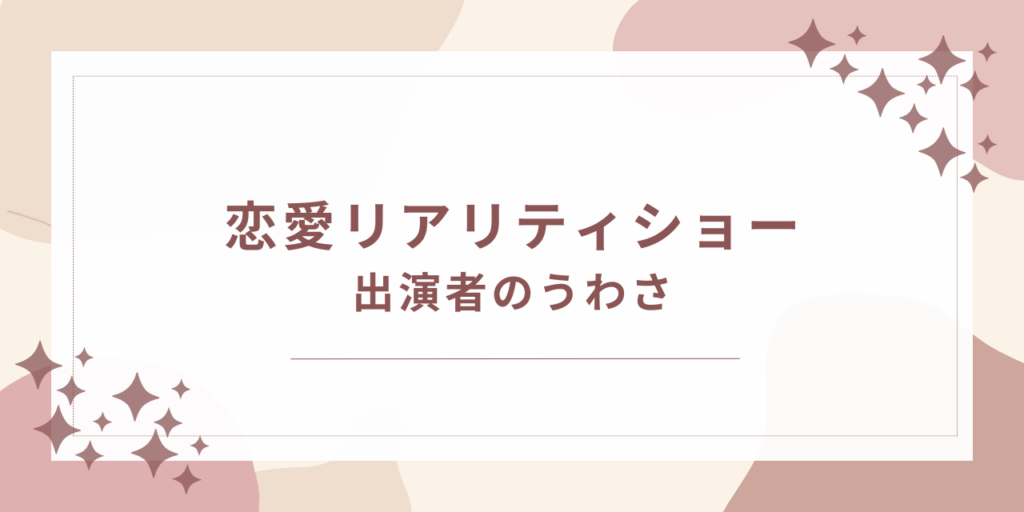 このサイトでは恋愛リアリティショーの出演者に関する噂について紹介しています!