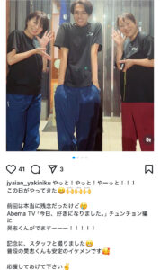 『炭火焼肉じゃい庵』のInstagramでは、倉上昊志さんの写真とともに応援メッセージが投稿されています。