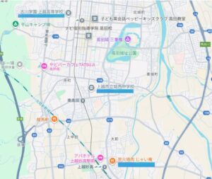 倉上昊志さんの出身中学校である城西中学校を基準に考えると、噂される上越高校とバイト先である『炭火焼肉じゃい庵』は反対の方向にあります。