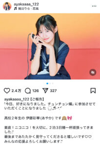 伊藤彩華さんは『今日、好きになりました。』に参加することを報告したInstagramの投稿に、