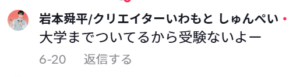 岩本舜平さんはTikTokのコメントの返信に大学受験について、「大学までついているから受験はない」とコメントしていました!